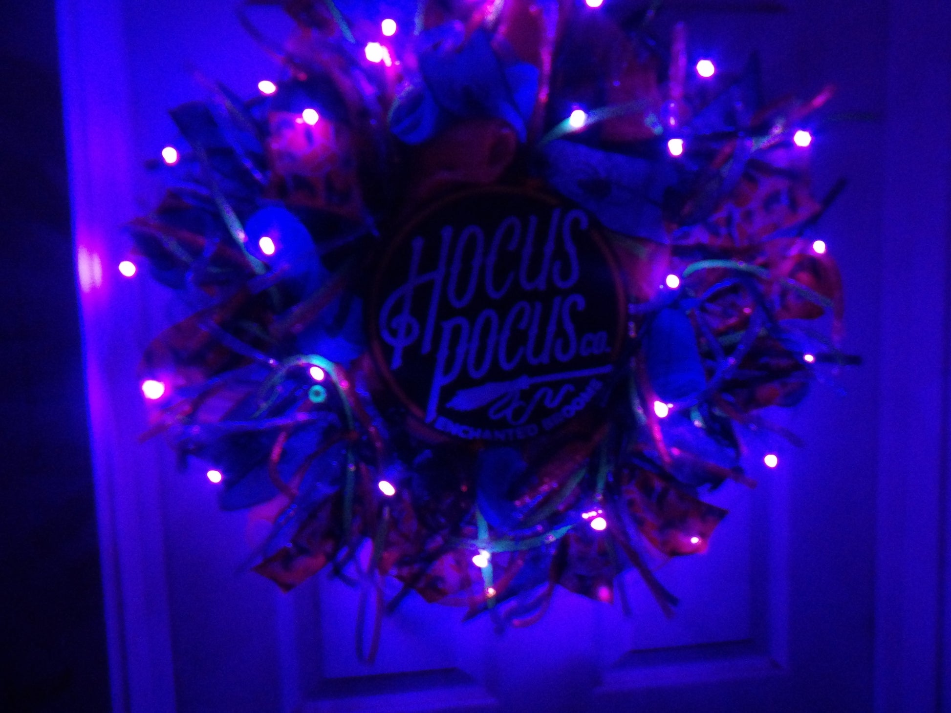 ๐งโโ๏ธ Hocus Pocus Halloween Wreath โ "Enchanted Brooms" Sign with Lights