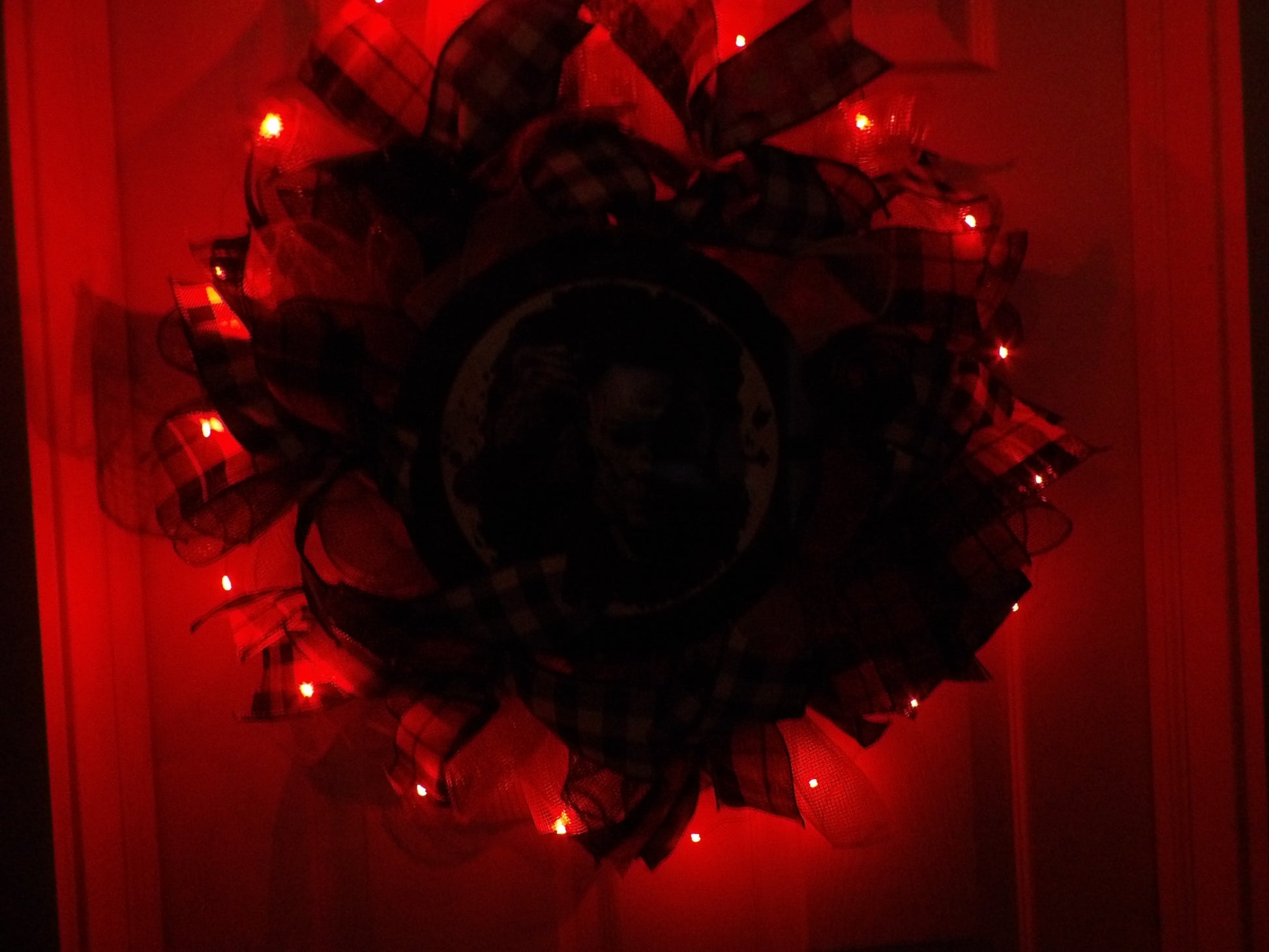 🎃 “Jason” Horror Halloween Wreath with Lights – Handmade Décor