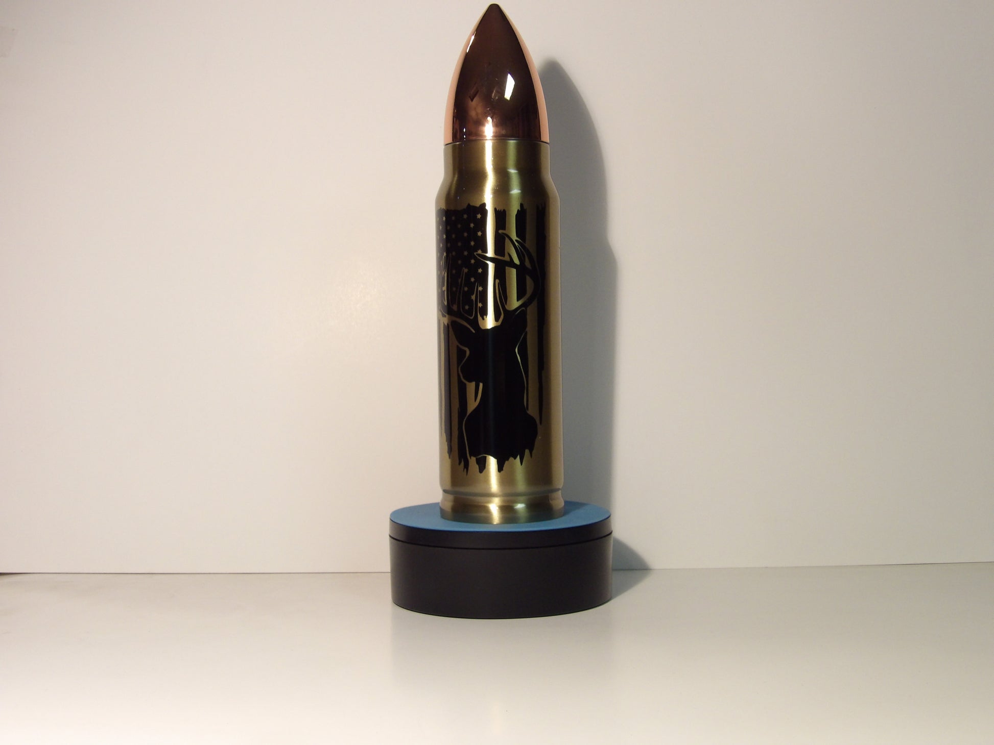 bullet thermos for hunters, hot cold flask, I'd rather be hunting gift, deer hunter gear, insulated bullet bottle, patriotic hunting thermos, copper bullet flask, stainless steel drink container, outdoor coffee thermos, hunting camp essentials