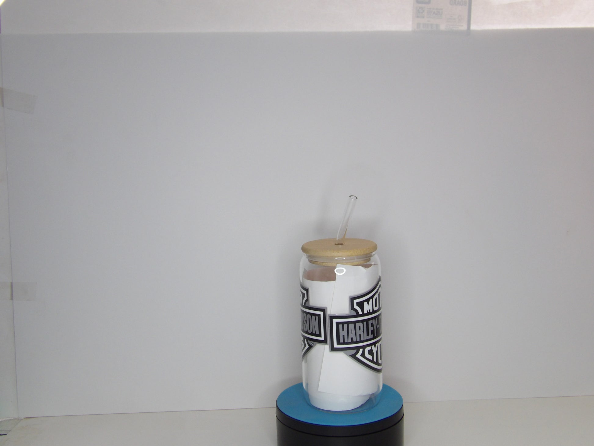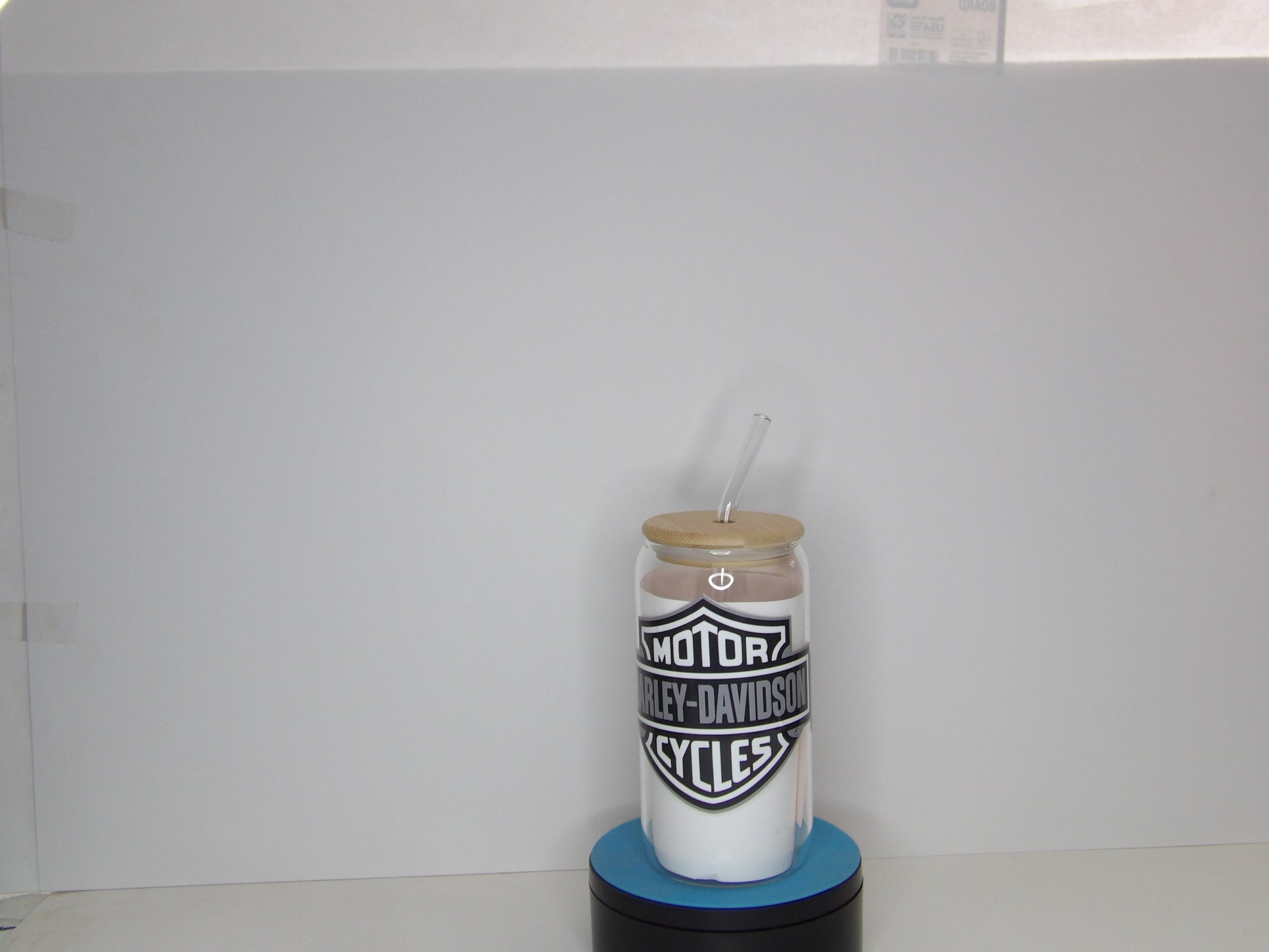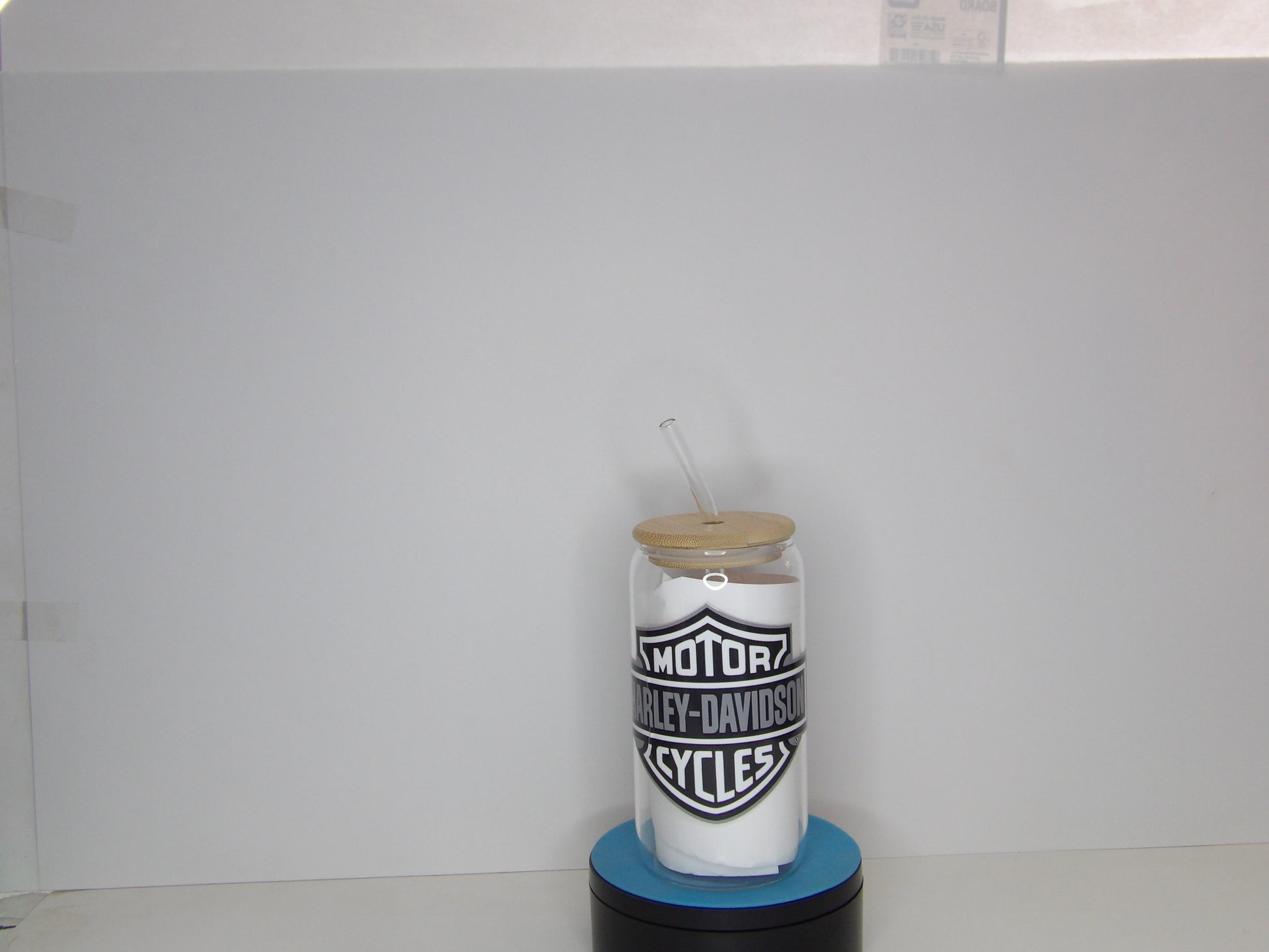 Raise your glass in style with this bold 16oz beer glass featuring a sleek black-and-white Harley-Davidson inspired design. Crafted from high-quality clear glass and topped with a natural bamboo lid, this glass is perfect for sipping your favorite brew, soda, or iced drink. Whether you're in the garage or relaxing at home, this glass brings rugged charm and classic biker vibes to every pour.