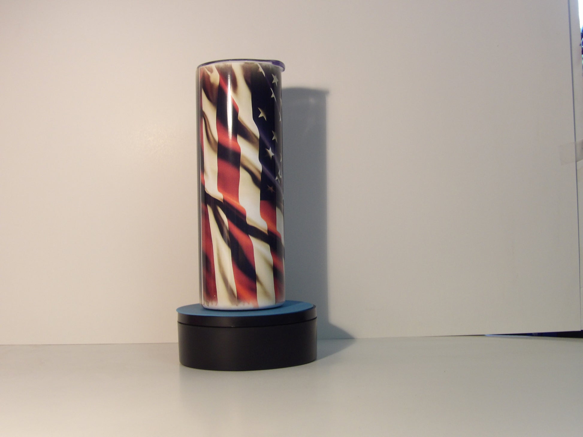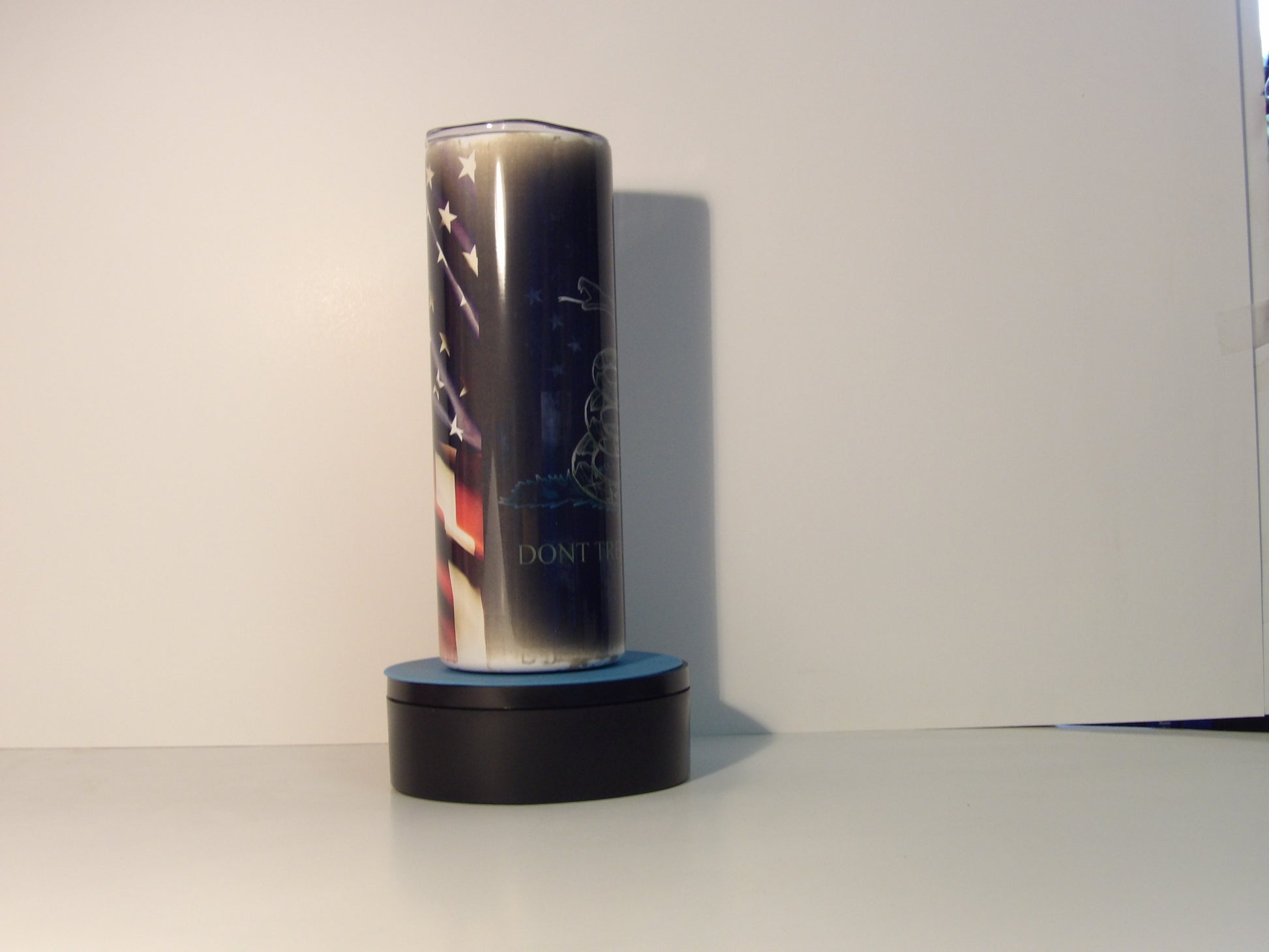 Stand strong with this 20oz "Don't Tread on Me" tumbler featuring a coiled Gadsden snake overlay on a sleek black backdrop with a rippling American flag. Built from stainless steel for durability and double-wall insulation, this tumbler keeps your drinks hot or cold for hours. Includes a secure lid and reusable straw. Perfect for patriots, military supporters, or anyone proud to defend freedom. Handwash only. Do not microwave.