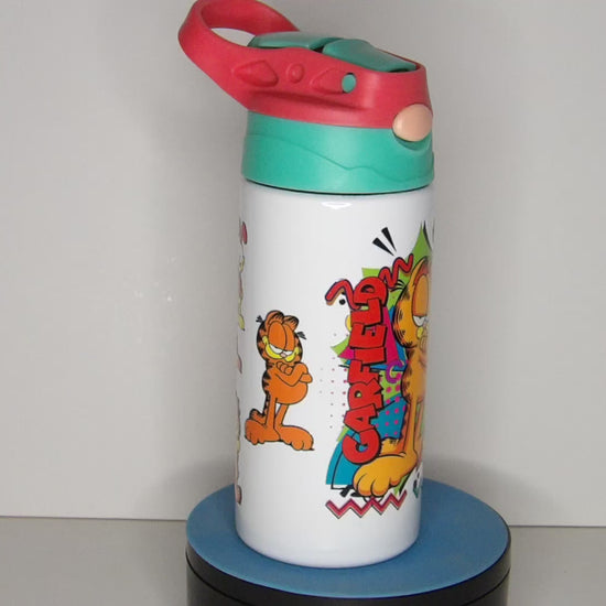 Quench your thirst with retro flair! This vibrant Garfield-themed pop-up straw bottle is perfect for fans of the iconic lazy cat. Featuring fun 90s-inspired graphics and bright colors, this kids’ water bottle combines function with nostalgia.