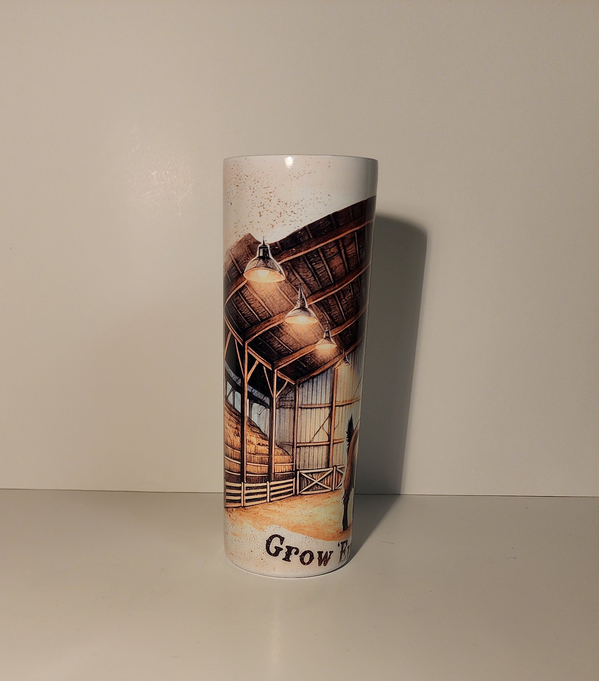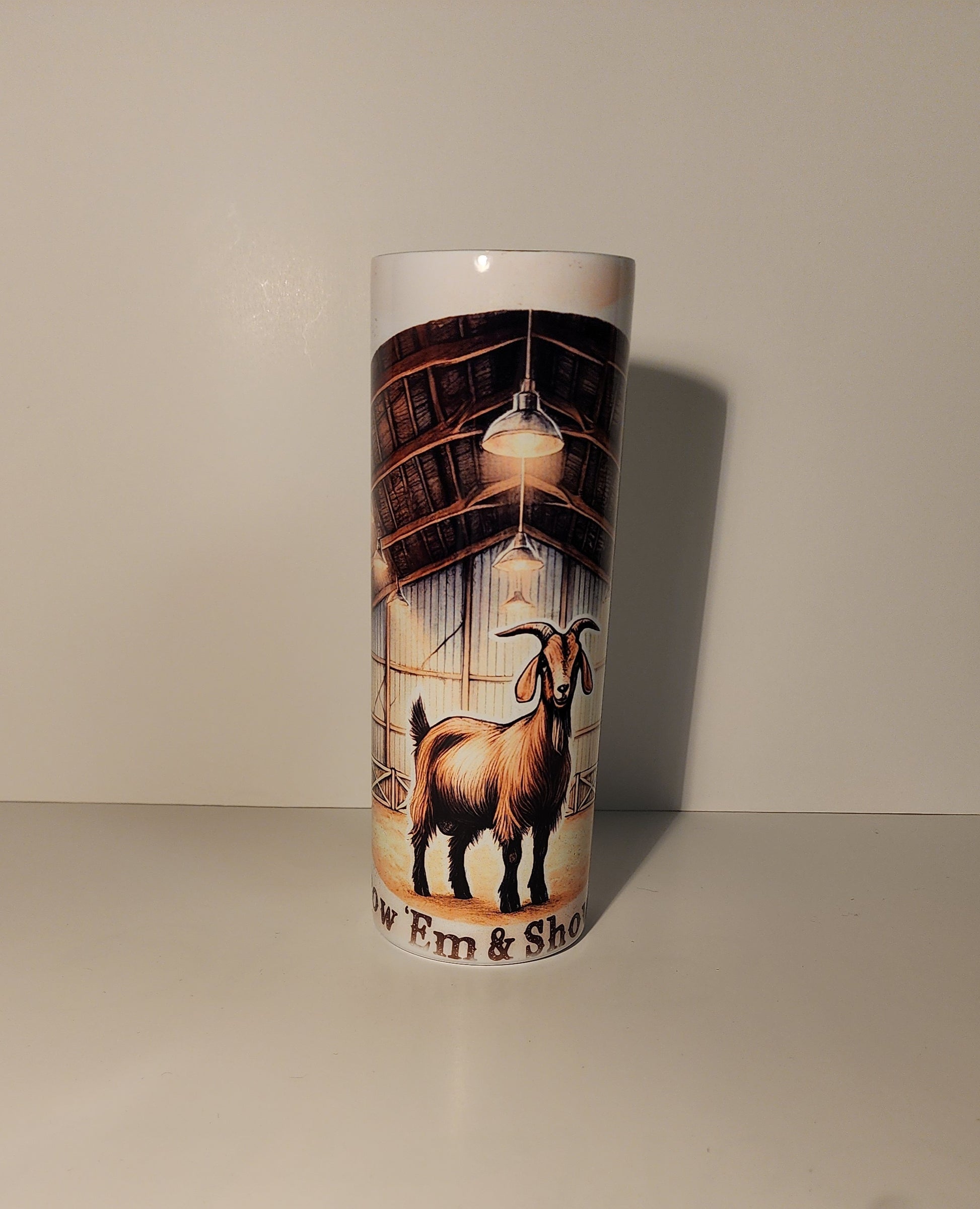 Show off your passion for farming and livestock with this 20oz stainless steel tumbler featuring a beautifully detailed goat barn scene. This tumbler captures the essence of raising and showcasing livestock, making it perfect for farmers, ranchers, and 4-H or FFA members. The phrase "Grow 'Em & Show 'Em" adds a motivational touch for those dedicated to raising animals with care and pride.