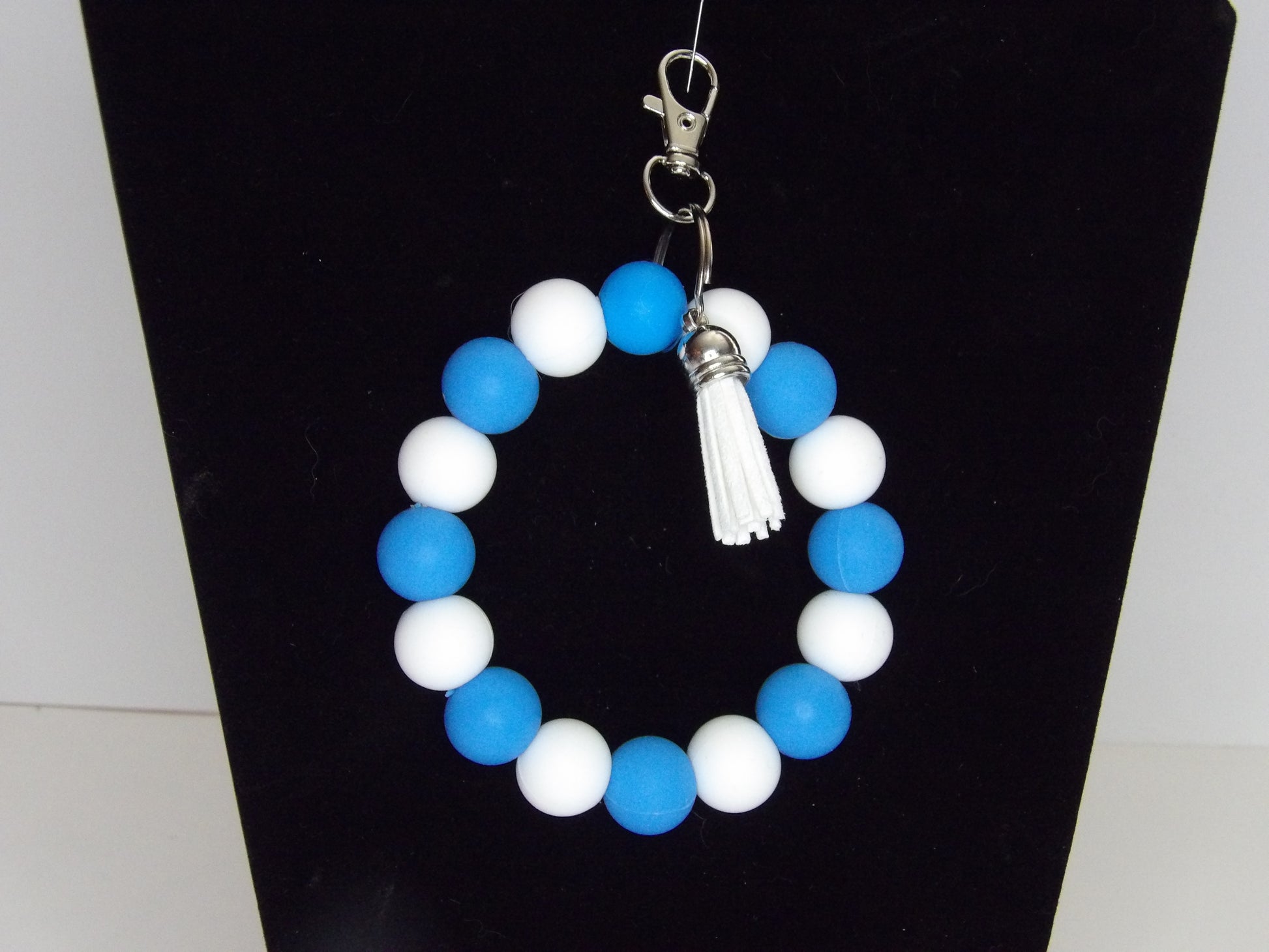 Stay stylish and organized with this handmade beaded wristlet keychain featuring a playful design and an extra charm attachment. Crafted with soft, durable silicone beads in bold and trendy color combinations, this wristlet is perfect for holding keys, ID badges, or small accessories. Each wristlet includes a keyring, lobster clasp, and a fun accent charm or tassel for added personality.