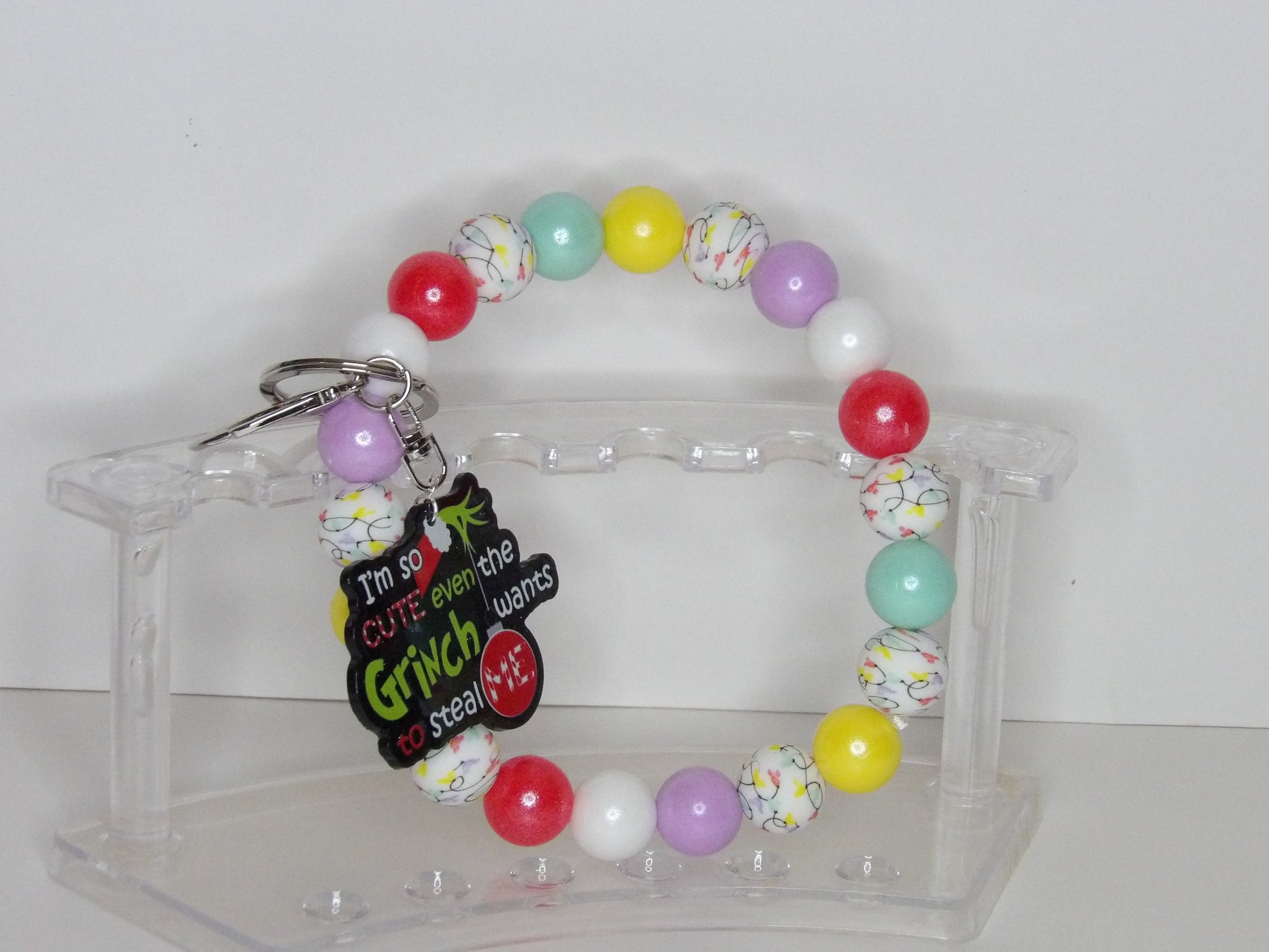 Each wristlet includes a sturdy split keyring and clasp for secure attachment, making it as functional as it is festive. Whether you're shopping for a thoughtful stocking stuffer, teacher gift, or just want to add a little holiday spirit to your daily routine, these handmade wristlets are sure to make spirits bright.