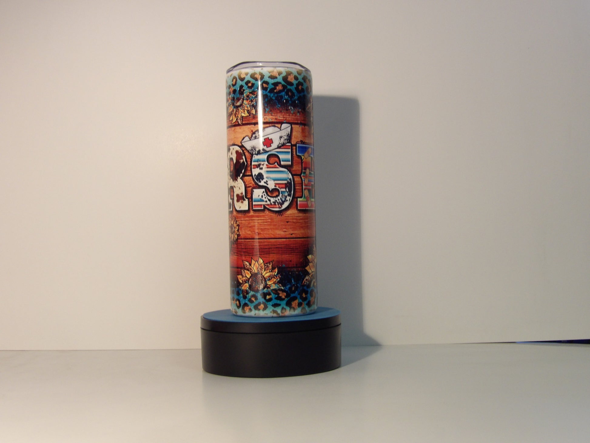 Celebrate the hardworking nurses who bring care and compassion every day with this Rustic Nurse 20oz Tumbler! Featuring bold western-style lettering, leopard print, sunflowers, and a wooden background, this tumbler is a beautiful blend of country charm and medical pride.