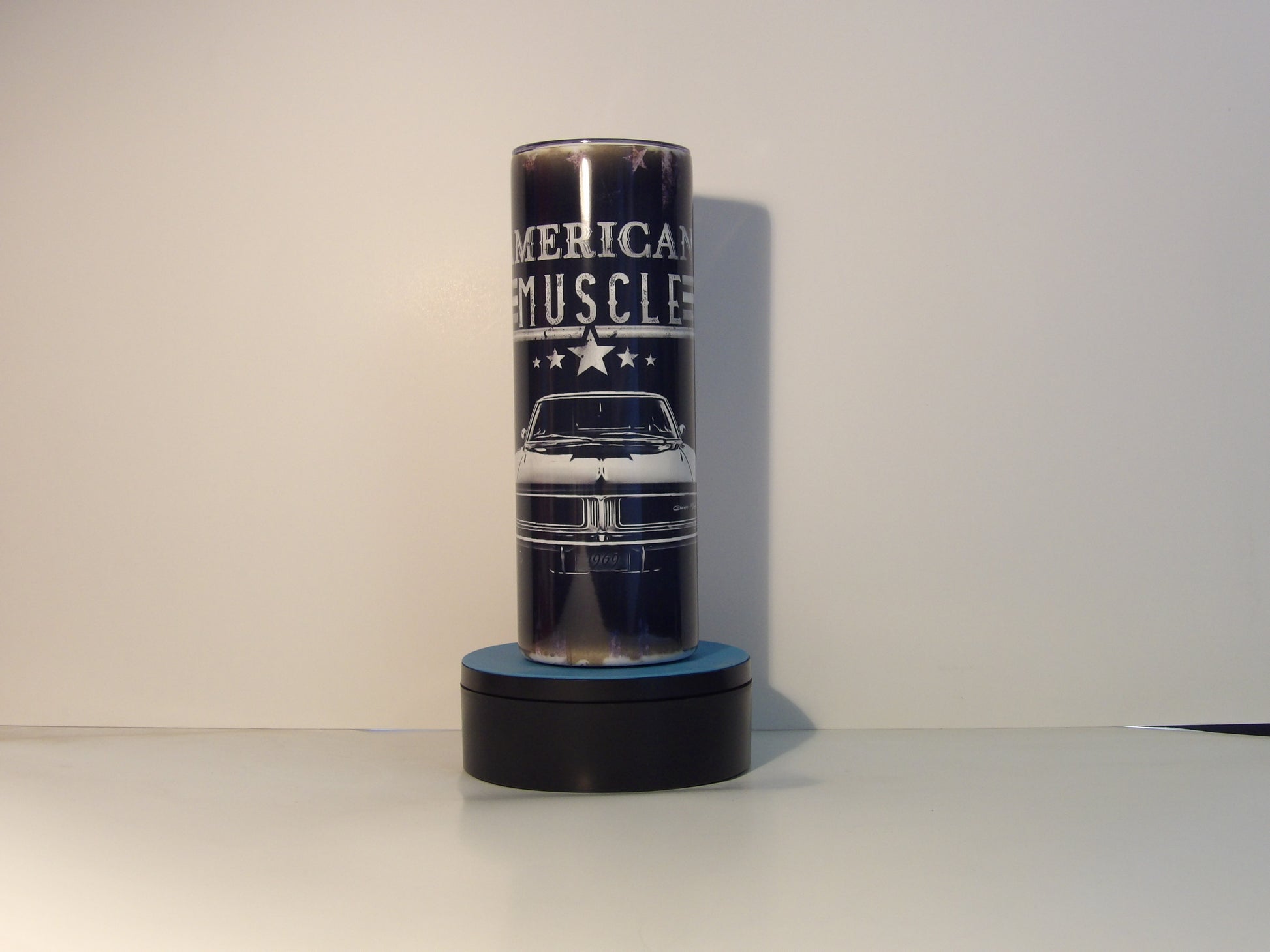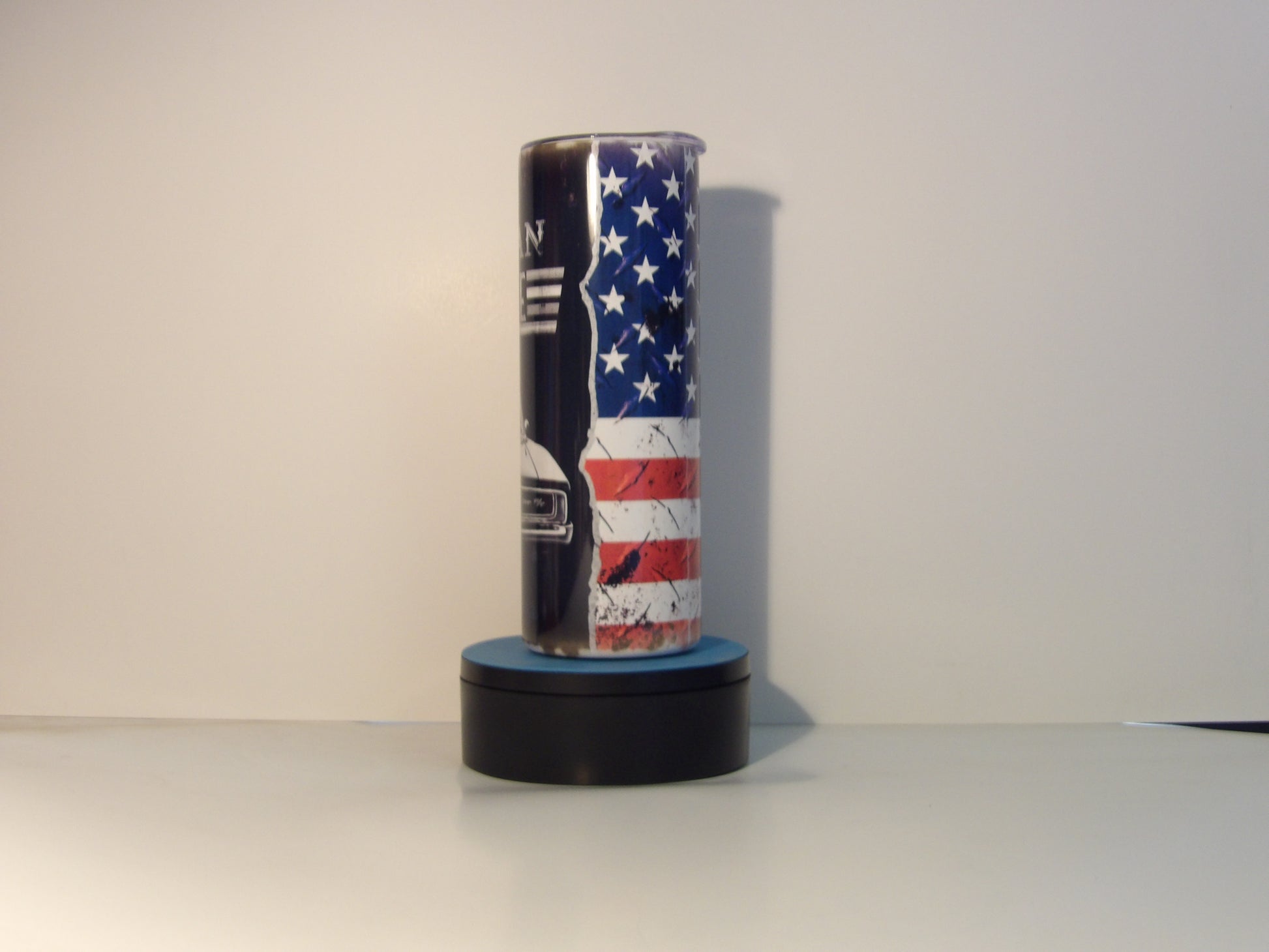 SEO Keywords: American muscle car tumbler, 20oz vintage car cup, USA flag travel mug, hot and cold drink tumbler, classic car enthusiast gift, patriotic car tumbler, insulated tumbler with straw, muscle car coffee cup.