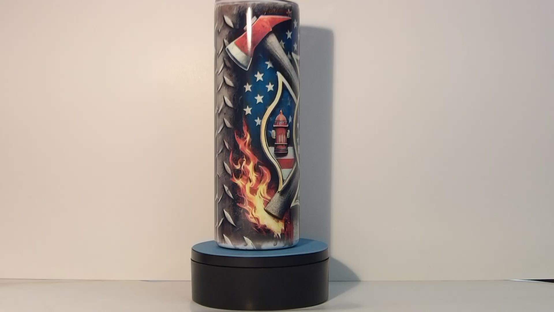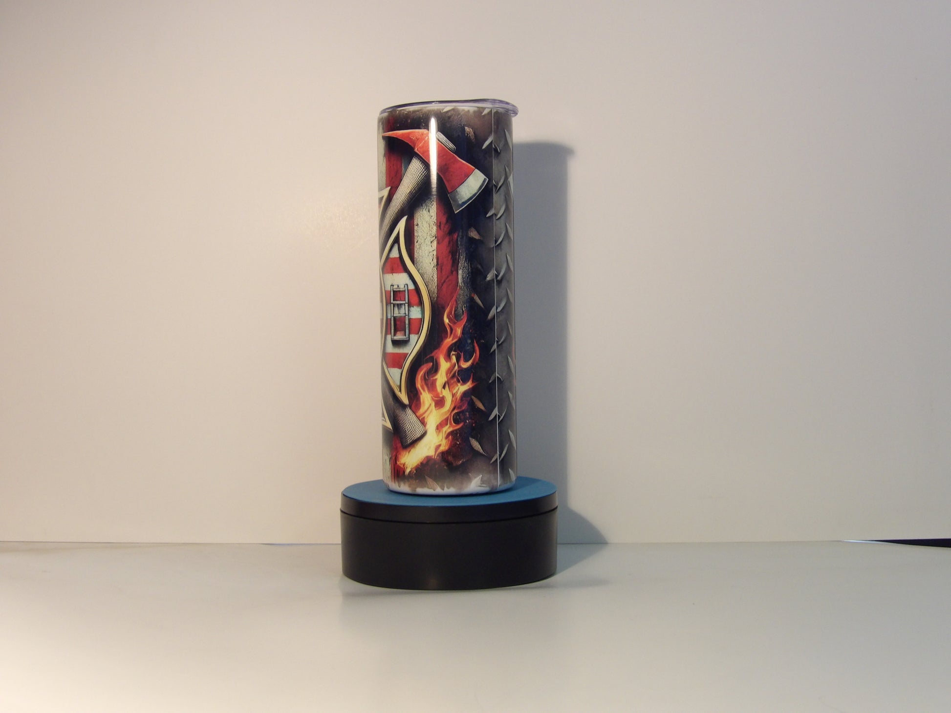 Salute the courage of firefighters with this bold 20oz stainless steel tumbler. Featuring a detailed Maltese Cross, American flag background, axes, flames, and metal textures, this insulated tumbler keeps drinks hot or cold for hours. Comes with a straw and secure lid for easy sipping on the go. Great gift for firefighters, first responders, or anyone proud to support our heroes. Handwash only. Do not microwave.