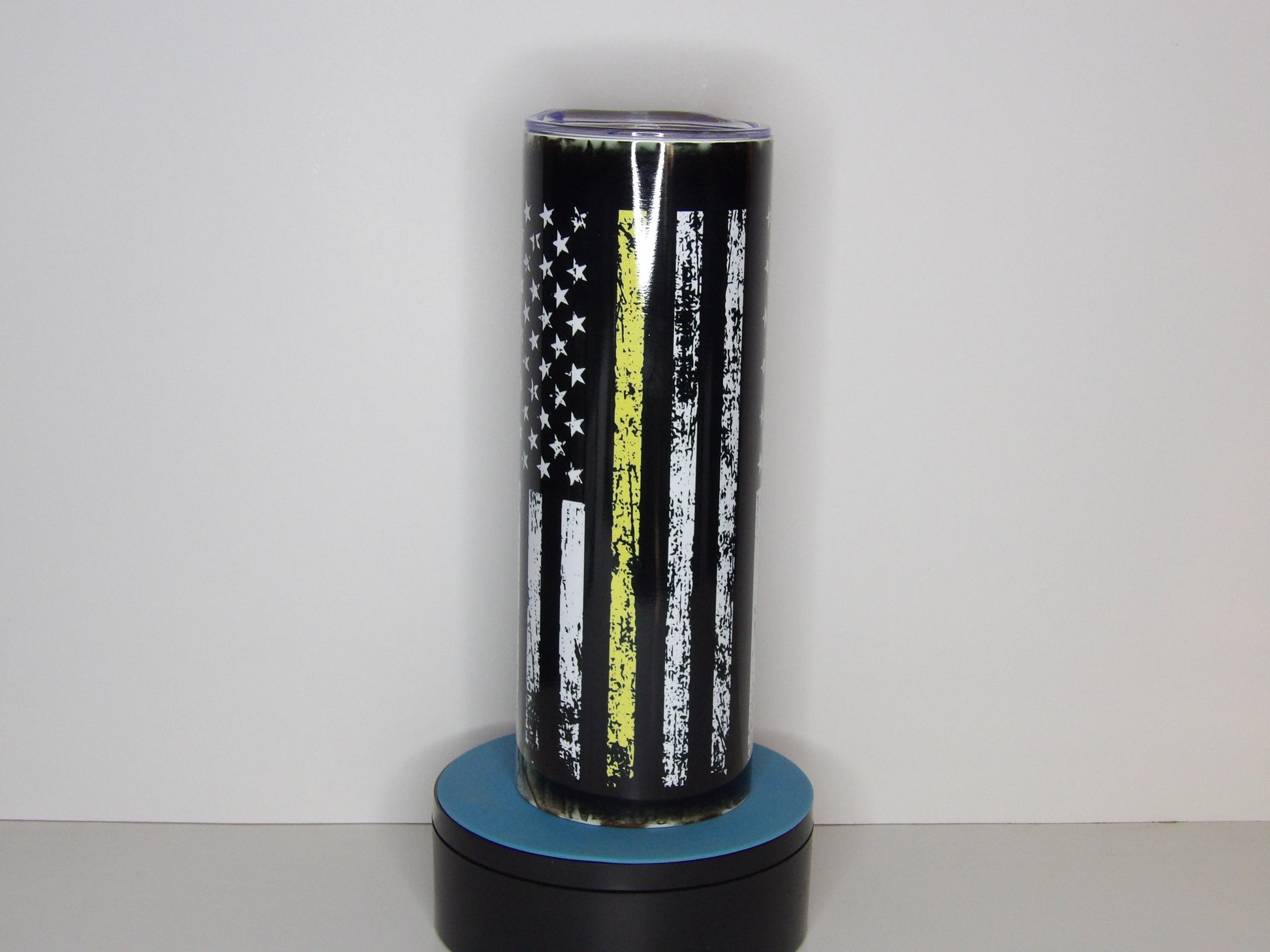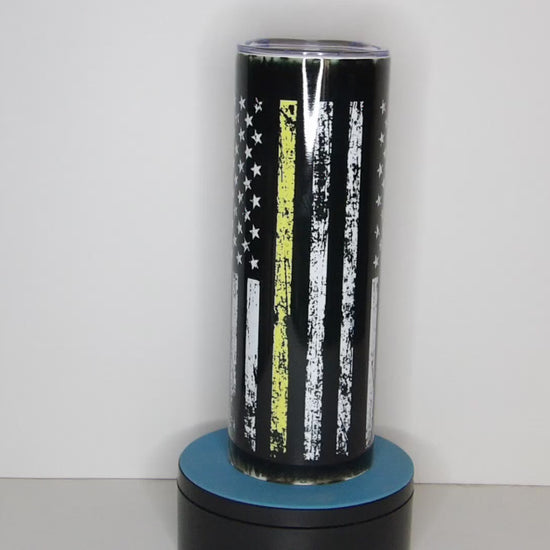 Show your appreciation for dispatchers with this bold 20oz Thin Yellow Line tumbler. Featuring a distressed American flag design with a striking yellow stripe, this stainless-steel tumbler is a meaningful tribute to the critical work done by emergency dispatch personnel. Whether for daily hydration or a thoughtful gift, this tumbler blends function with heartfelt support.