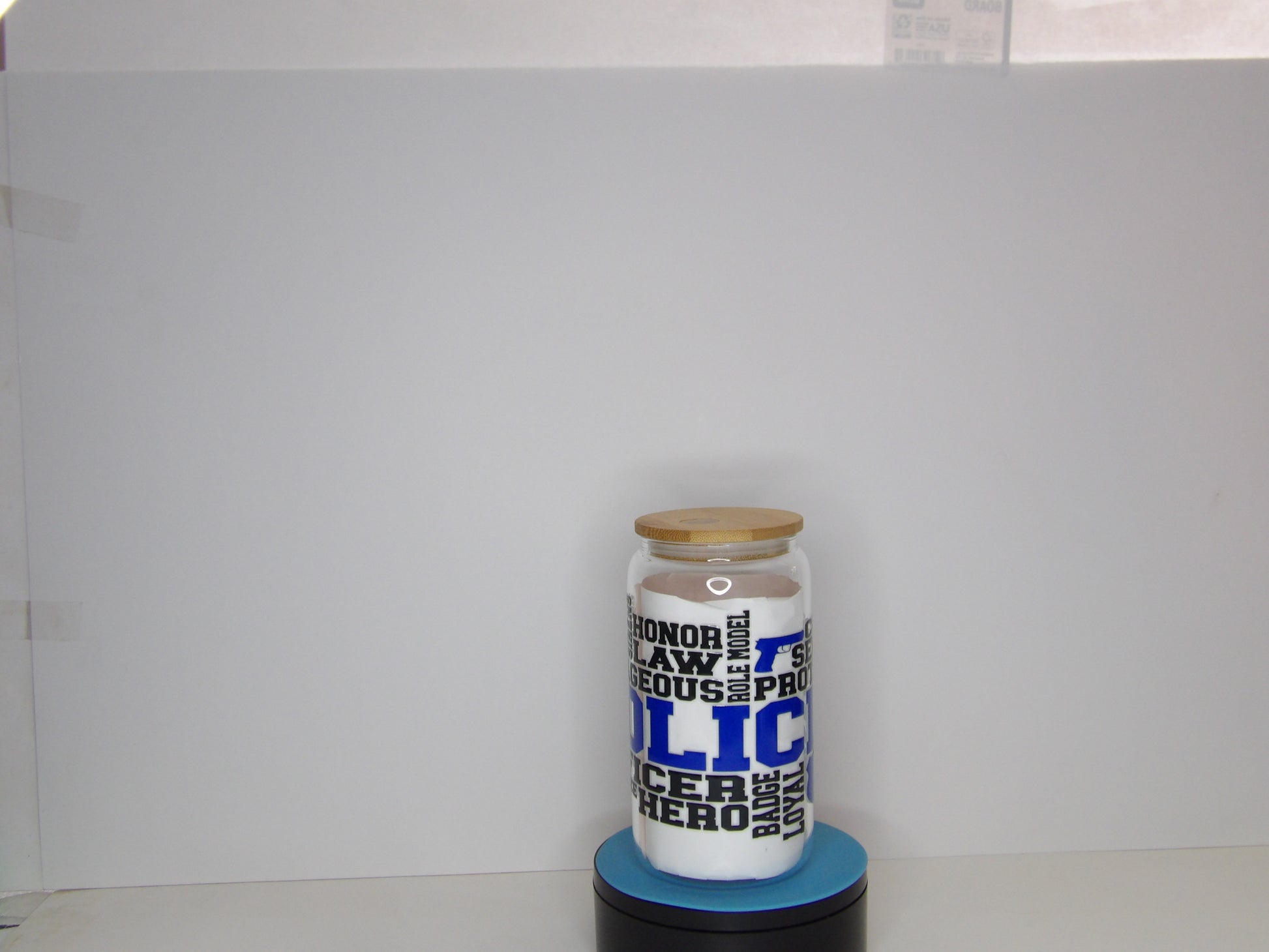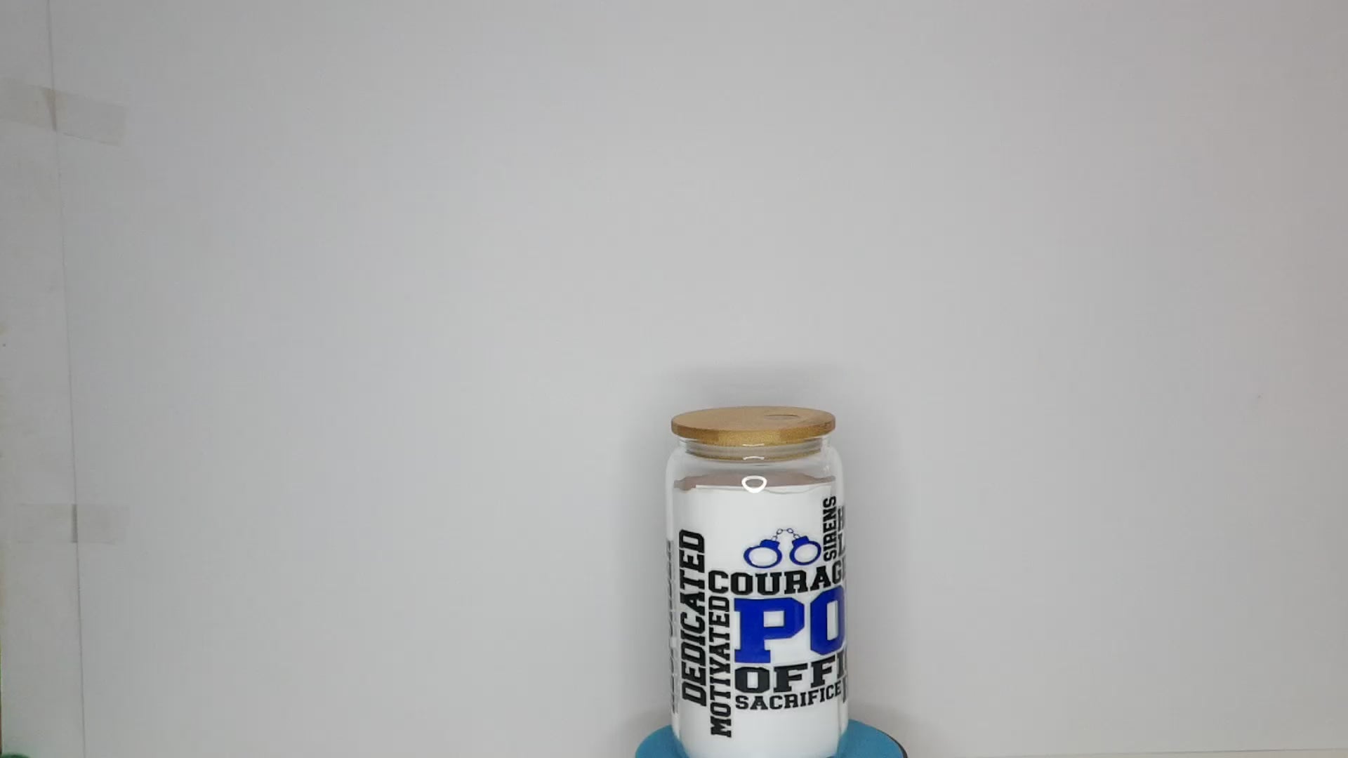 Honor the courage, dedication, and service of law enforcement officers with this Police Sayings Glass Jar. Designed to showcase the values and commitment of police officers, this jar is adorned with bold typography featuring words that define the essence of police work.