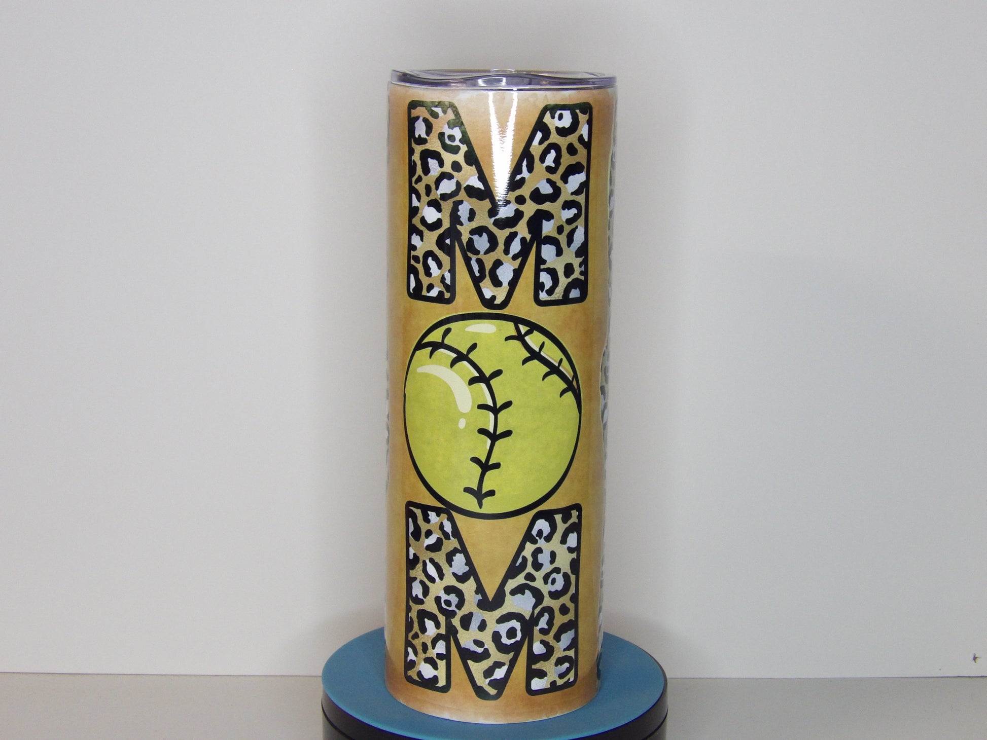 Show off your team spirit in style with this bold and eye-catching Softball Mom 20oz tumbler! Featuring a neon yellow softball nestled between trendy leopard print “M” letters, this tumbler is the perfect blend of sporty and sassy. The vibrant full-wrap design includes a seamless mix of leopard spots and softballs running down the opposite side, making it a must-have for any proud softball mama.