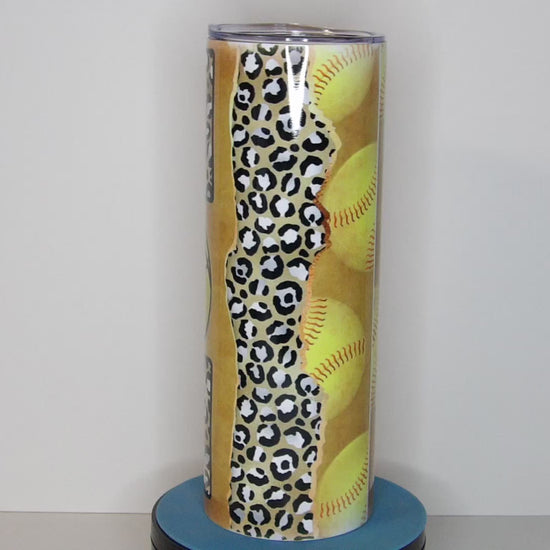 Purple 20-Softball Mom 20oz Tumbler – Leopard Print & Neon Yellow Softball Design