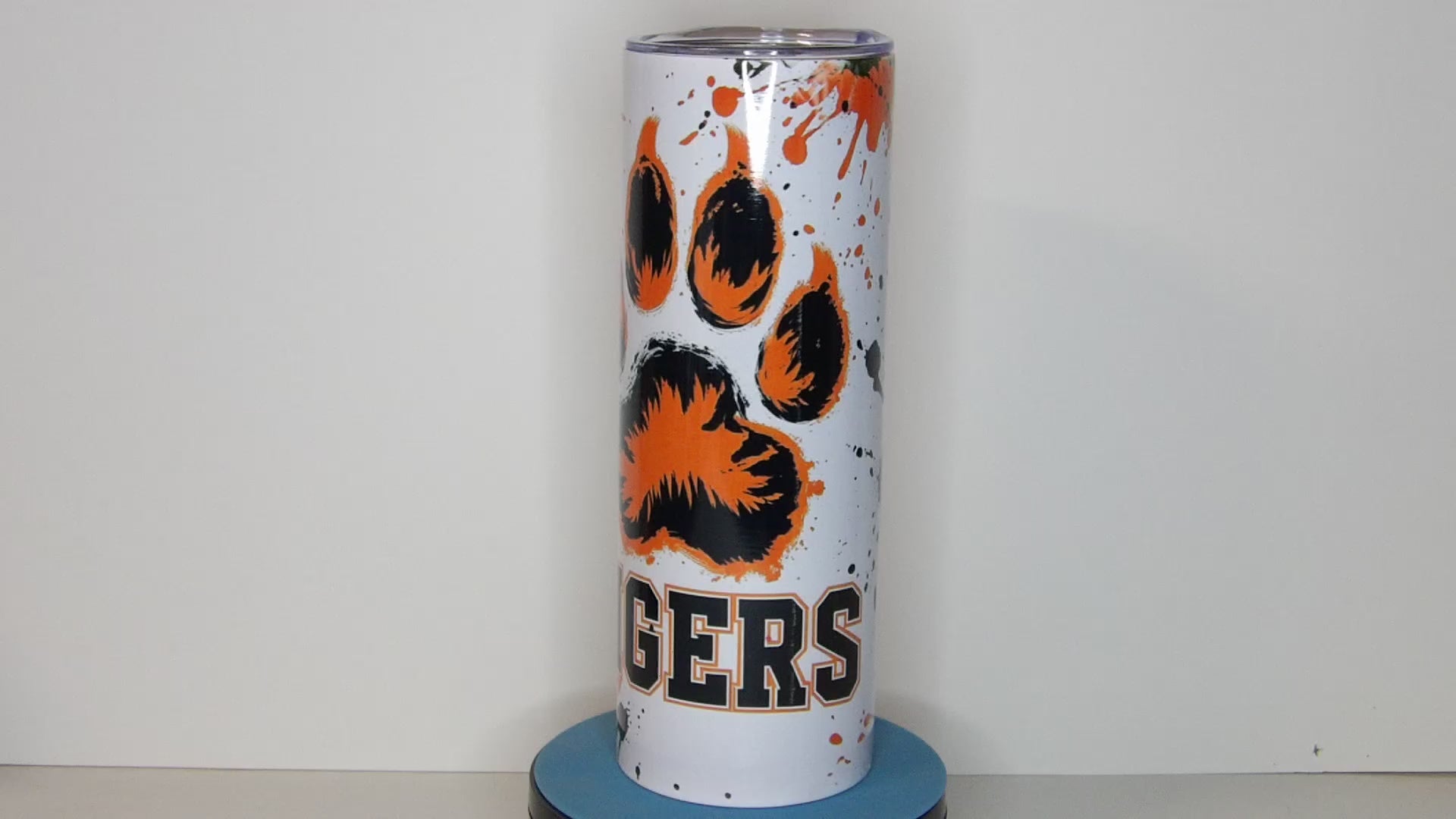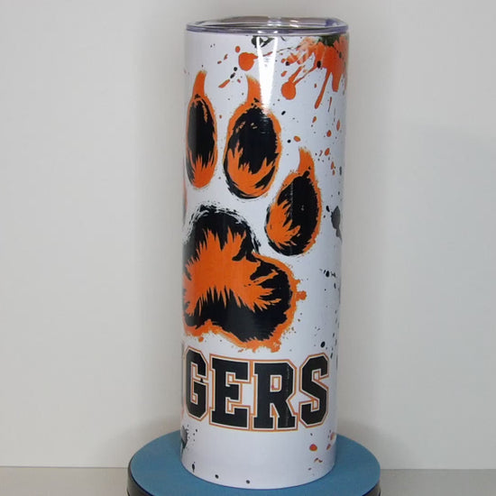 Show off your school spirit with our bold and eye-catching Tiger Pride 20oz tumbler! Featuring a fierce tiger paw print, vibrant orange and black splatter background, and the word “TIGERS” in varsity-style lettering, this insulated drinkware is perfect for students, parents, alumni, and fans alike. Whether you're cheering from the stands or running errands, this tumbler keeps your beverage hot or cold while making a statement.