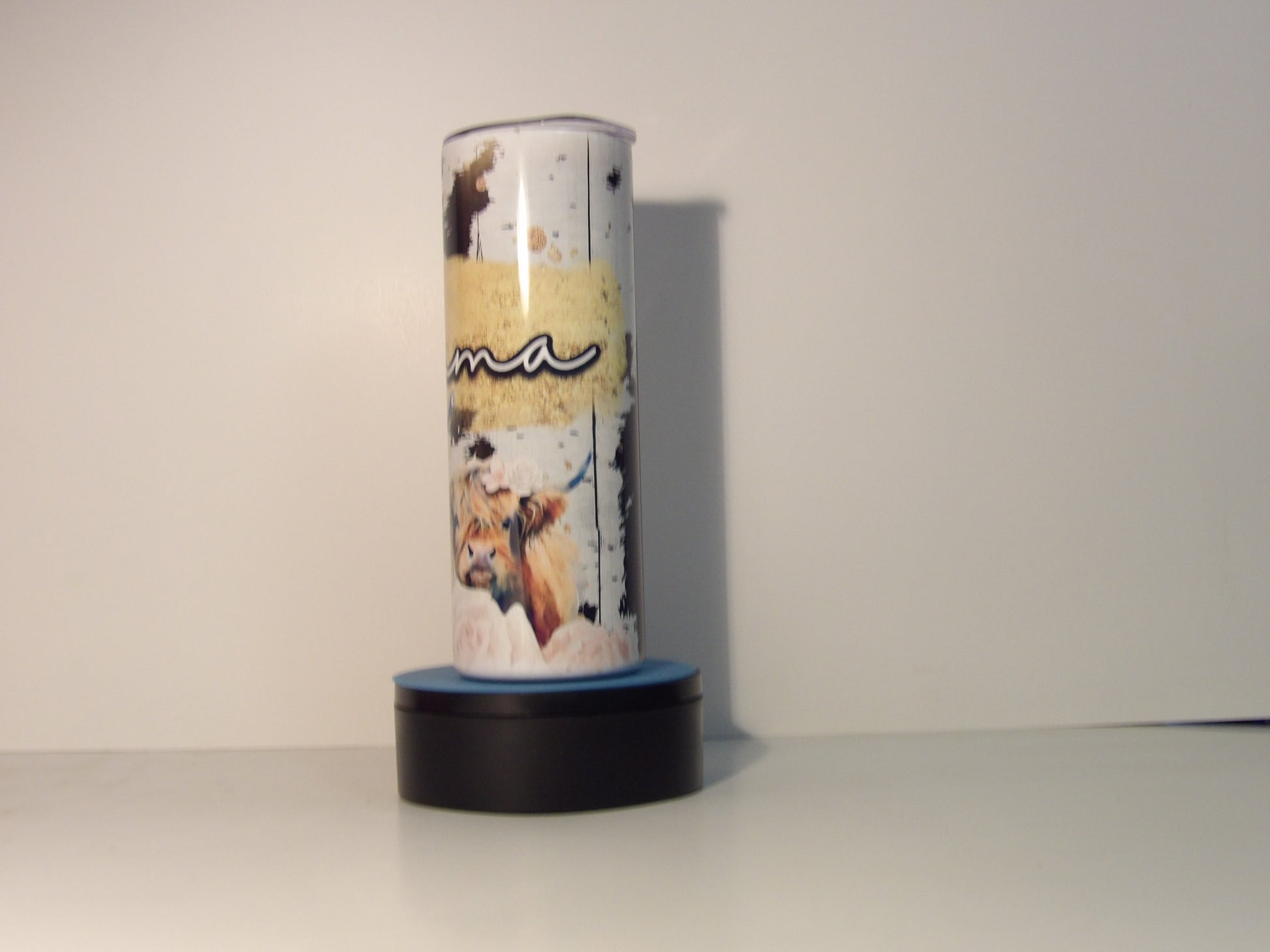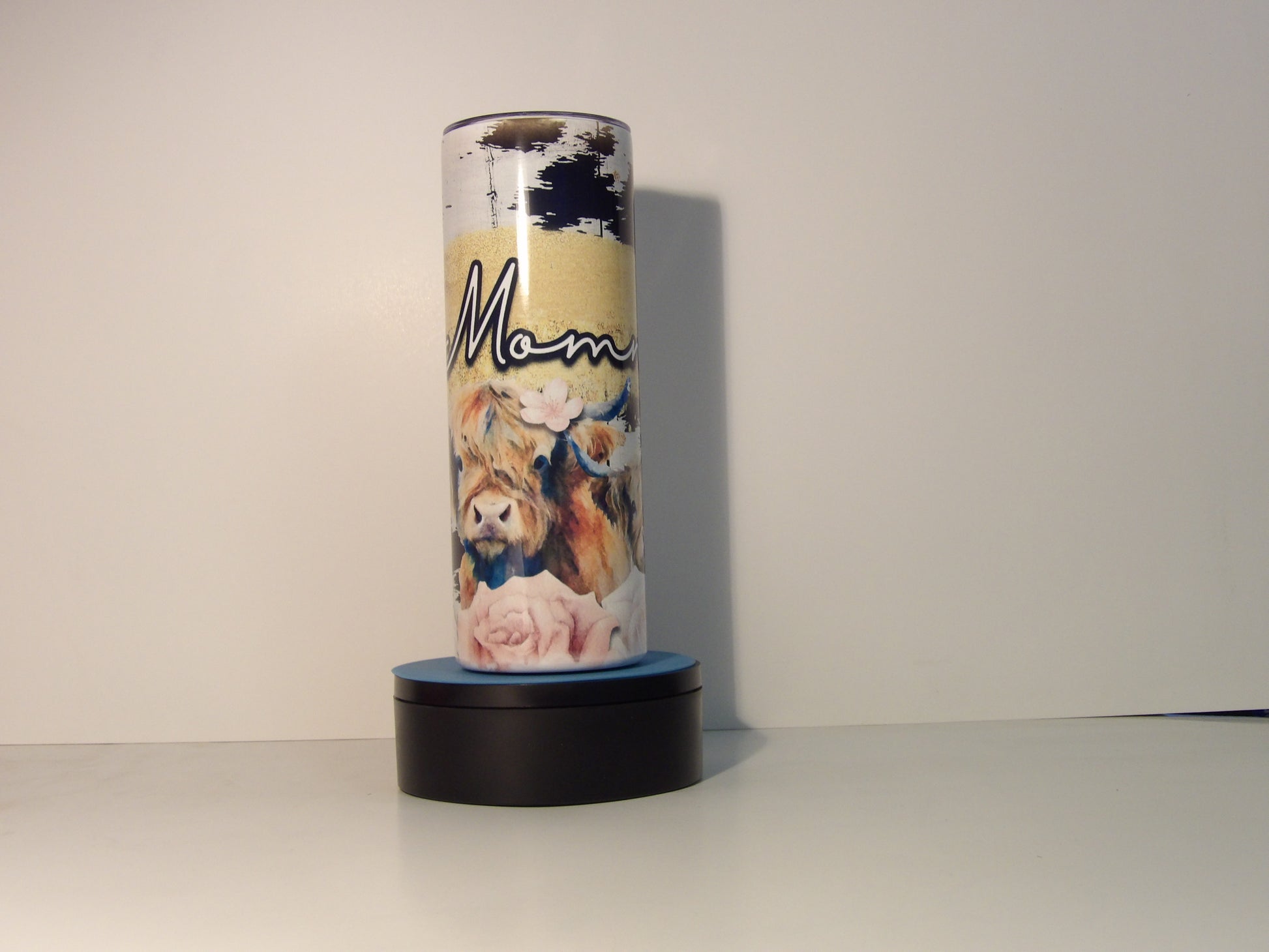 SEO Keywords: highland cow mom tumbler, 20oz floral tumbler for mom, rustic mom gift, insulated cow tumbler, Mother's Day drinkware, cute cow and calf cup, hot cold travel tumbler for women.