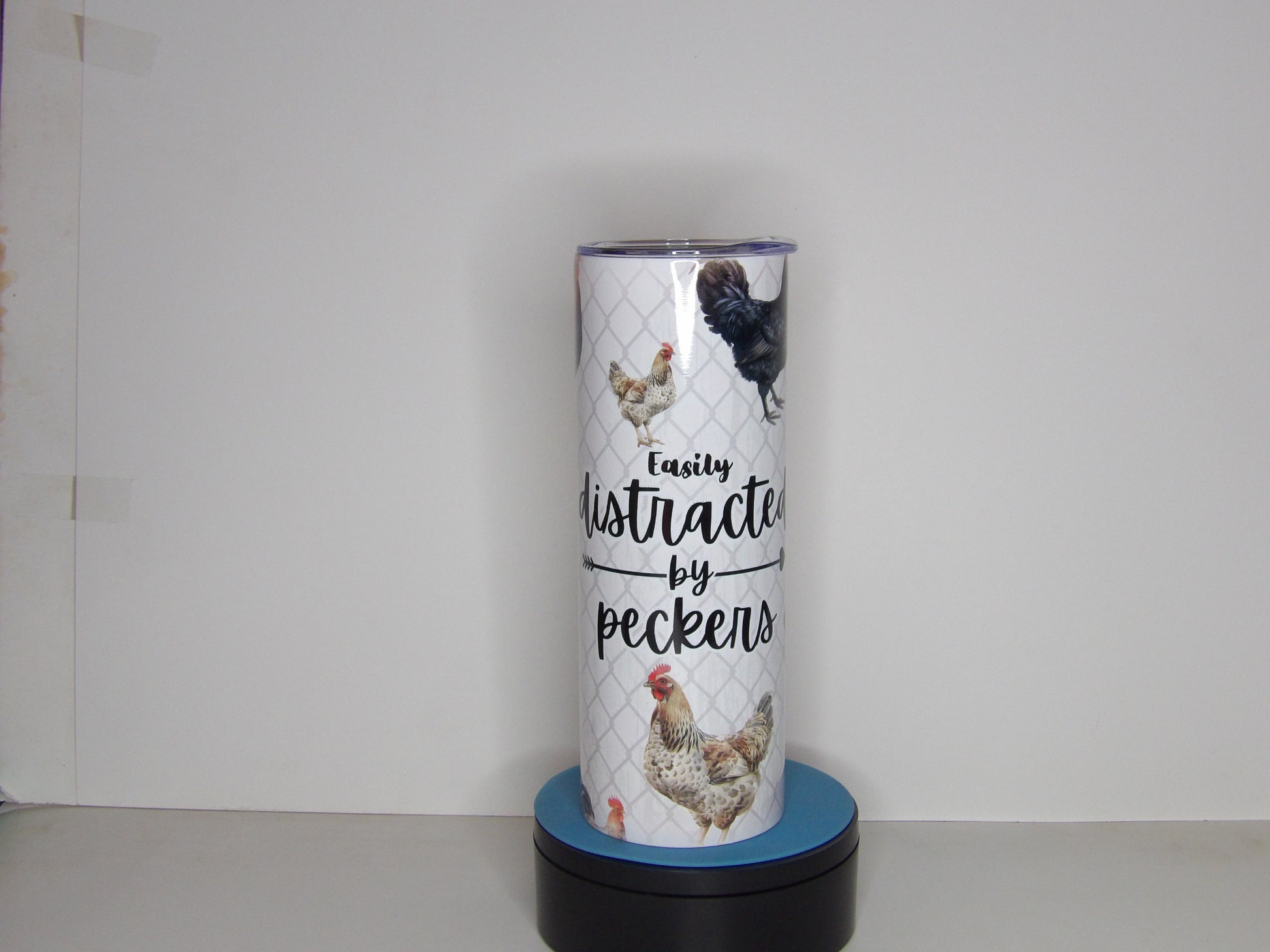 SEO Keywords: chicken tumbler, funny farm tumbler, 20 oz stainless steel tumbler, easily distracted by peckers cup, insulated hot cold drinkware, rooster tumbler with straw, chicken lover gift, do not microwave, hand wash only