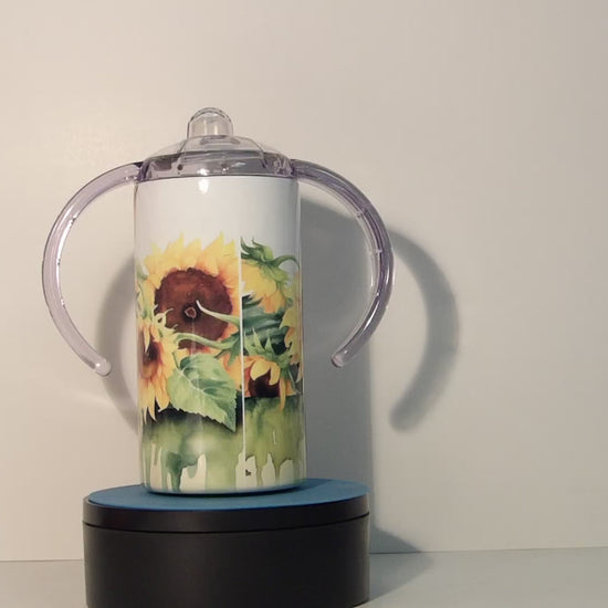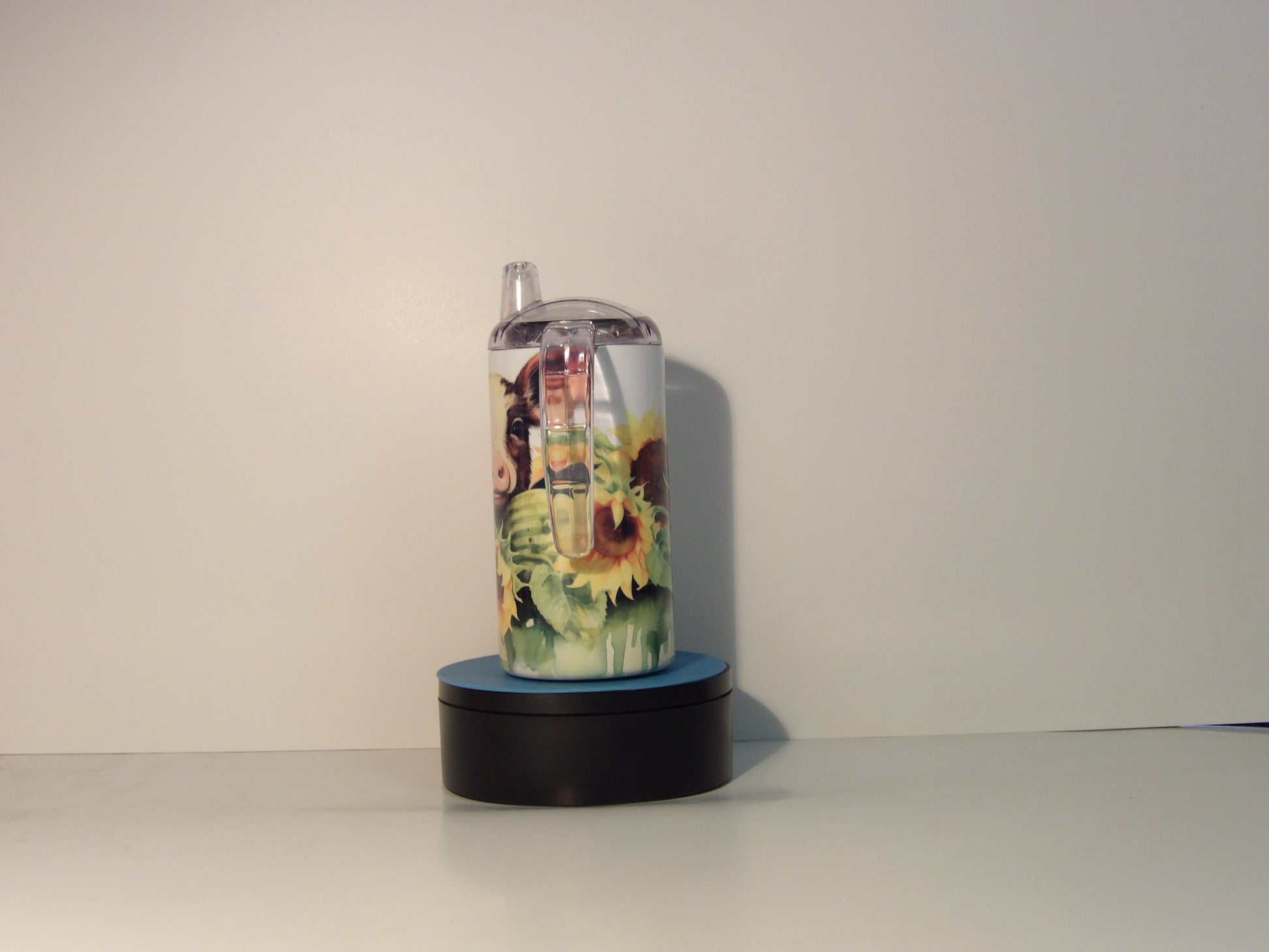 Brighten your little one's day with this adorable 12oz stainless steel tumbler! Featuring a sweet piglet peeking out from vibrant sunflowers, this charming design is sure to bring smiles. Designed with removable easy-grip handles and a spill-resistant sippy lid, this tumbler easily transitions into a regular cup as your child grows. Double-wall insulated to keep drinks hot or cold for hours, it's durable, lightweight, and perfect for busy toddlers and young animal lovers on the move. Comes with a regular lid and straw for them to use as they get older.